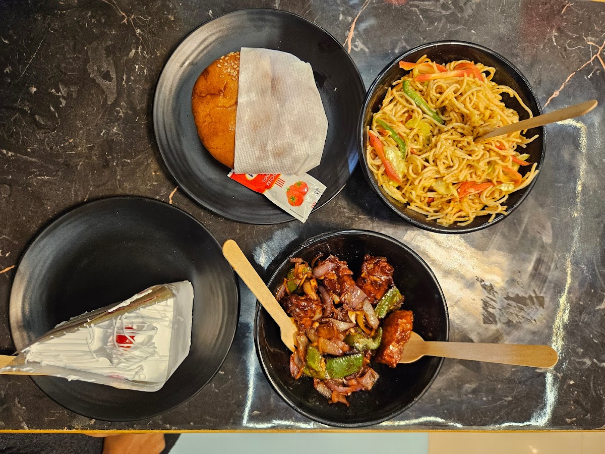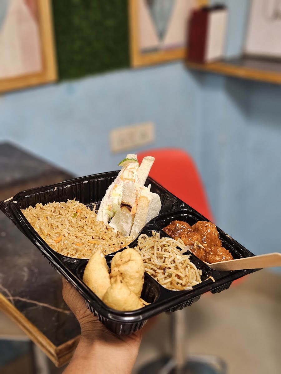 For those who enjoy rolls, the cafe offers a delightful selection. Choose the Paneer Kathi Roll for a satisfying bite at ₹90 or indulge in the savory Chicken Kathi Roll for ₹100. Pair your meal with the fragrant Veg Fried Rice (₹130) or opt for the decadent Schezwan Paneer Fried Rice (₹160) that adds a spicy kick to your dining experience.